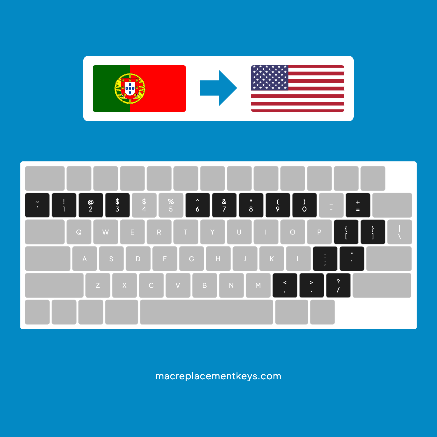 Portuguese to US Layout Conversion Kit for MacBook Pro A2442