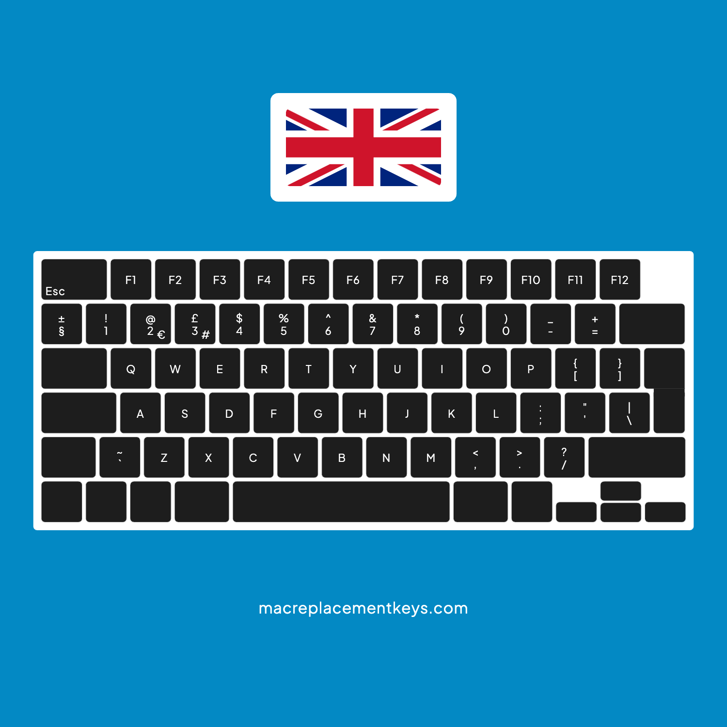 Complete set of UK keycaps compatible with the MacBook Pro A2780. All our full keycap sets include a free key remover tool.
