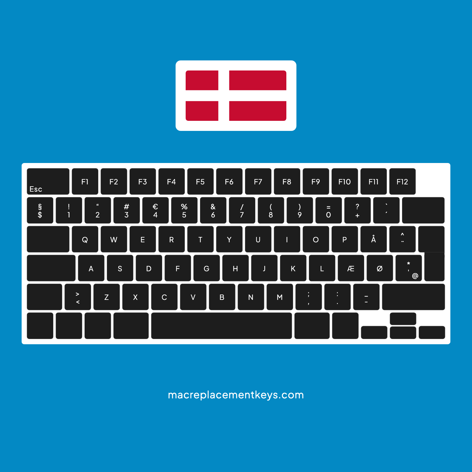 Complete set of Danish keycaps compatible with the MacBook Pro A3112. All our full keycap sets include a free key remover tool.