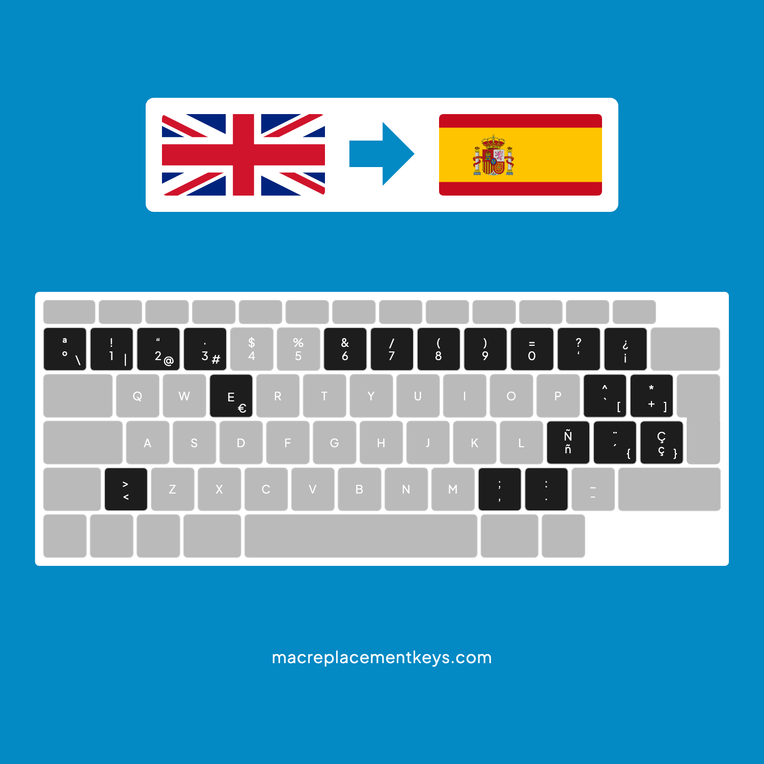 UK to Spanish Layout Conversion Kit for MacBook Air A2337