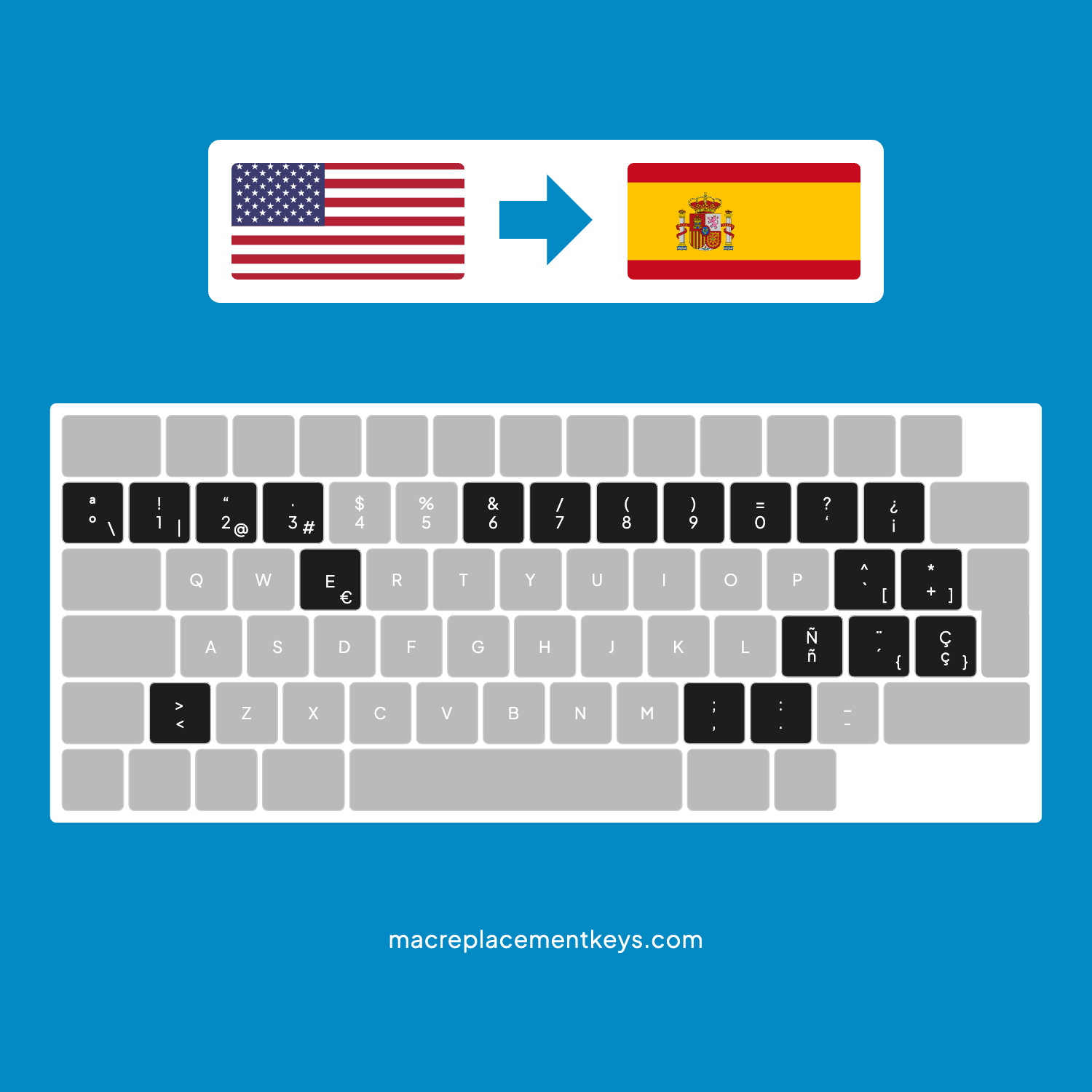 US to Spanish Layout Conversion Kit for MacBook Pro A2780